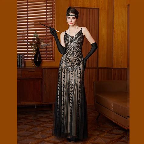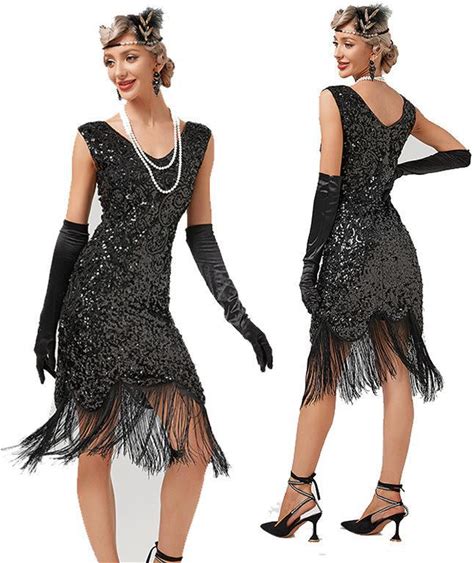 Set Roaring 20S 1920S Knee Length Dress Flapper Dress Outfits With Accessories Cold Shoulder The Great Gatsby Wedding Guest Sequins Tassel Fringe V Neck Fancy Dress Women's Evening Party Party